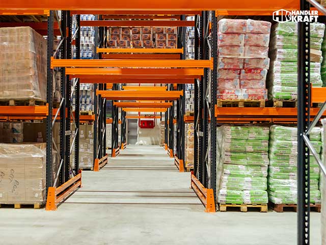 Traversele sunt executate din doua profile C din otel sudate robotizat cap la cap. Fixarea traversei de stalpi se efectueaza printr-o simpla agatare, imbinarea fiind asigurata suplimentar cu ajutorul unui cui de siguranta. Rafturile se fixeaza de pardoseala cu ancore metalice.